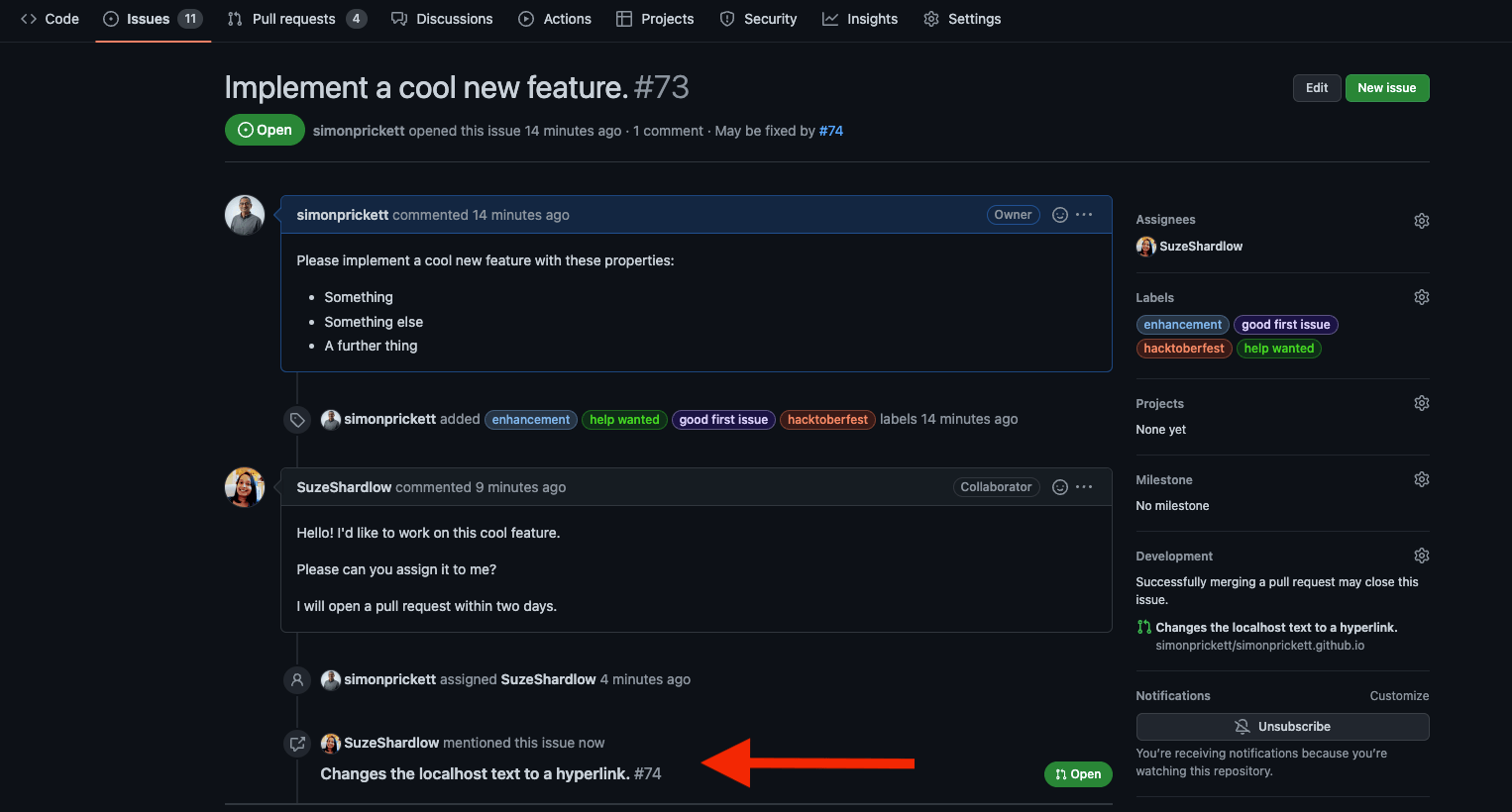 - Make sure you reference the issue number in your pull request so that it shows on the issue's page.
